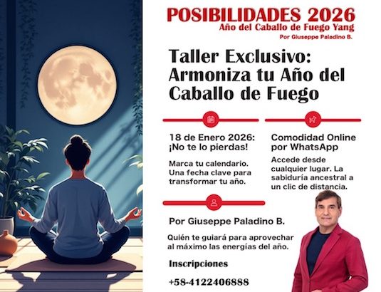 El año 2026 se presenta como una oportunidad para activarnos y desarrollarnos en el nuevo año lunar del Caballo de Fuego Yang . Con el objetivo de aprovechar al máximo las nuevas posibilidades del año. Giuseppe Paladino nos trae un taller dirigido y una